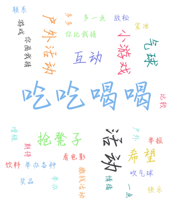 活动结束后,参与者填写了一份调查问卷,100%的同学认为该活动有助于缓解压力;且有96.67%的同学希望继续举办类似活动;在活动形式上,同学们也给出了其他建议。