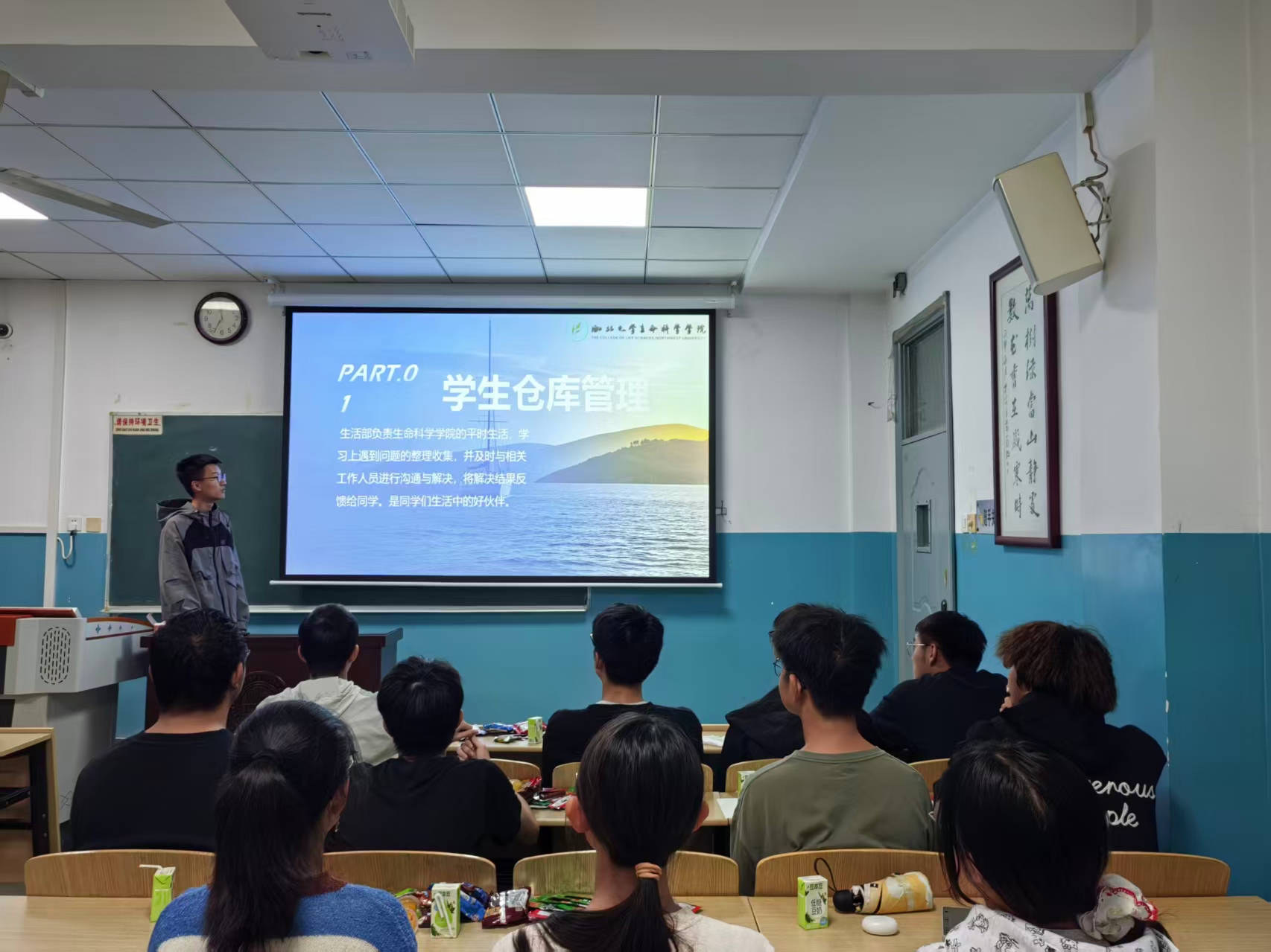 培训中,王轩同学清楚的讲解了仓库物资清点、日常整理等内容,让参与培训的成员清晰掌握仓库管理的“全流程要点”,为后续精准服务同学、保障活动物资供应筑牢了能力根基。
