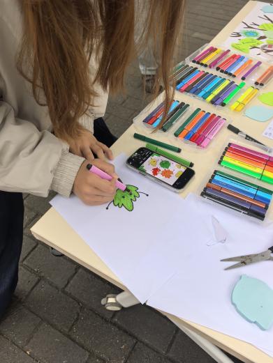 活动伊始,现场工作人员为每位入场同学分发纸笔,邀请大家制作专属“生命树叶”。笔尖流转间,“植物学”“分子生物学”“生物化学”等研究方向跃然纸上,DNA双螺旋、实验烧杯、拟南芥等充满生科特色的“小标志”生动呈现——每一片树叶,都是萌新们学术兴趣与个性的独特表达。