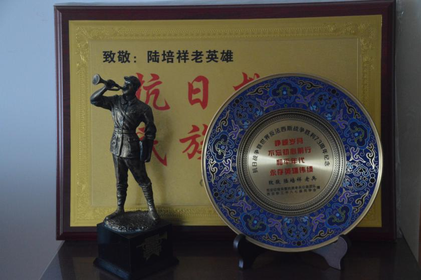 老人讲到:“我(一生)最深刻的事就是参军,都是自愿的,大学毕业就自愿参军了。纪念抗战胜利70年的时候颁发勋章,我很高兴,这是国家对我的认可!我很自豪,希望你们年轻人也要好好学习,未来祖国建设需要你们。”谈及抗战经历,陆老语气中满是自豪,热情向同学们展示他这一生所获得的荣誉奖章。期颐之年的陆老对如今的和平岁月感到欣慰,更是对同学们寄予了殷殷厚望。