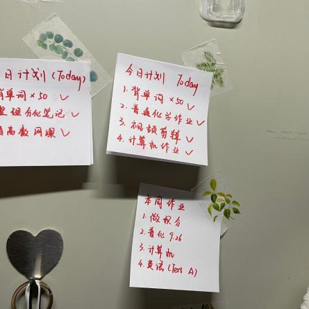 此外,我们在宿舍里也贴满了励志话语和学习计划,鼓舞彼此向着心中的理想进发!