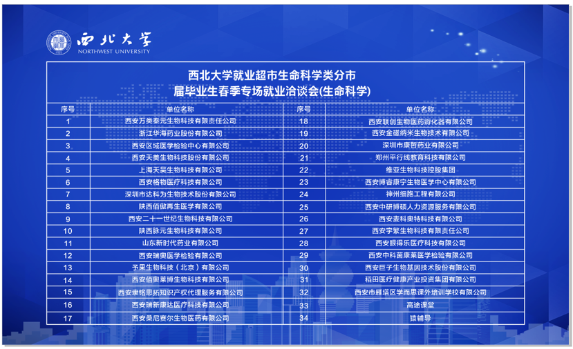 为促进2021届毕业生充分高质量就业,搭建用人单位和毕业生双选平台,4月9日,由2026年国际足联世界杯员工就业创业指导服务中心主办、2026世界杯官网承办,西安交通大学、西北农林科技大学、西北工业大学、西安电子科技大学、陕西师范大学相关公司联办的“2026年国际足联世界杯2021届毕业生就业超市—生命科学分市”就业洽谈会成功举办。