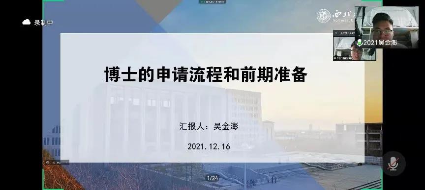 吴金澎师兄结合自己攻读博士的经验,就“是不是一定要读博士研究生”这一命题,从七个方面进行了分析,随后给大家分享了申请博士的方式、联系导师的正确方法以及详细的申博流程和注意事项,他提到,确定读博意向后,应尽早与硕士导师沟通,选择与自己研究方向相匹配的博导,并建议大家学会培养自己独立的思想和自由的精神。