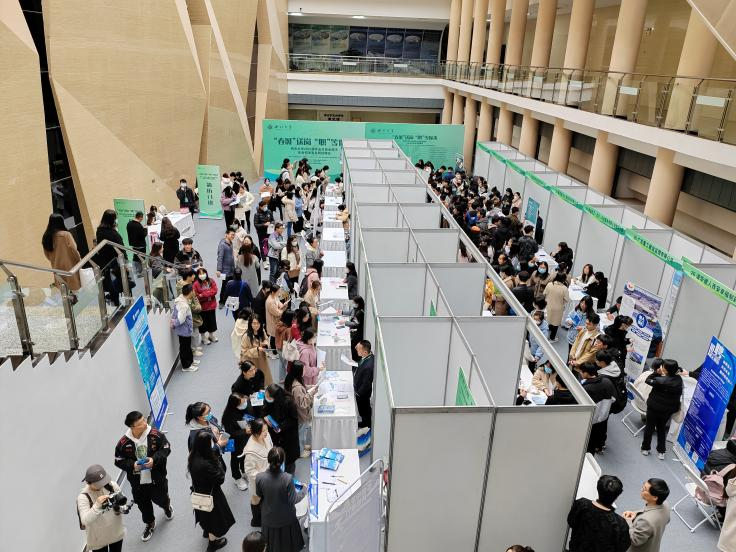 陈富林副董事长及有关负责人与参会单位、求职员工亲切交流,详细了解企业简况和人才需求,询问员工求职情况,并向企业热情推荐优秀毕业生。张宇书记、付爱根经理、员工工作负责人魏宁、就业专干郭佳惠积极与上海皓元医药股份有限公司、西安万类秦元生物科技有限责任公司、深圳市朗坤环境集团股份有限公司、迪安诊断技术集团股份有限公司、西安博睿康宁生物医学中心有限公司、陕西梅里众诚动物保健有限公司、广西壮族自治区中国科公司广西植物研究所、陕西脉元生物科技有限公司、清华德人西安幸福制药有限公司9家公司现场洽谈,充分了解各企业基本情况、人才需求、招聘现状与下一步合作意向,针对人才输送、创新创业、校企合作等事宜进行了充分讨论。