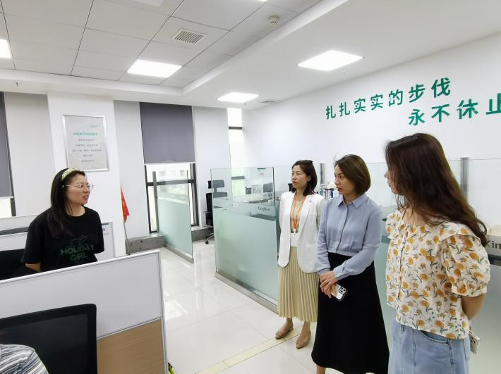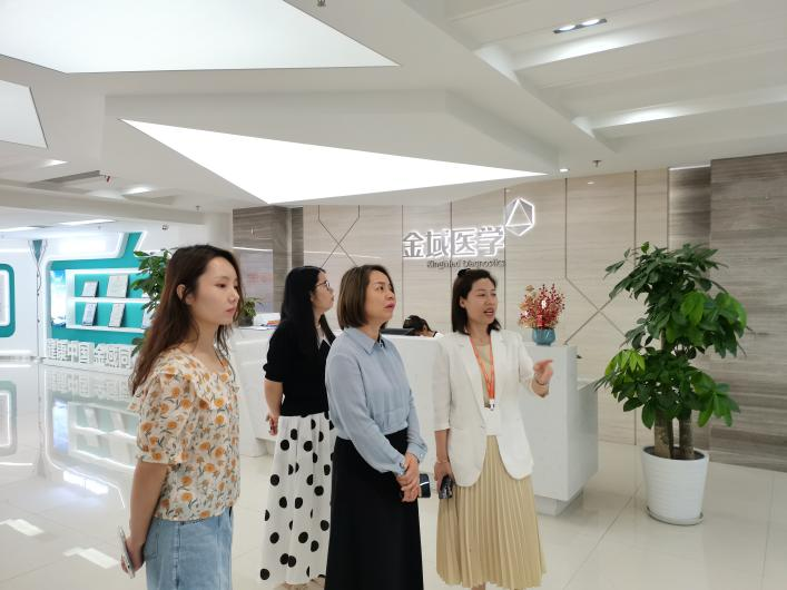 在西安金域医学检验所有限公司,有关负责人首先带大家走进公司员工工作区、餐饮区、健身区、休闲区等,亲切分享公司的企业文化、发展历程、企业荣誉,随后逐一参观公司生化发光、免疫、基因、质谱、病理等各大实验技术平台,详细介绍公司医检体系、肿瘤检测体系等运营模式、业务范围、运作优势。张亚妮副经理、郭佳惠老师亲切慰问了已就职于金域医学的毕业生代表。交流环节,双方回顾了扎根多年的合作情谊,对进一步加深产学研合作、推动成果孵化和科技创新表示期待。郭佳惠老师分享了2023届毕业生的当前就业情况,询问了公司的职位需求,张亚妮副经理表示,金域医学作为粤港澳大湾区的代表企业,长期聚焦医检主业,引领国内临床医学检验和病理诊断行业发展,希望能继续依托金域的技术平台和医检人才培养优势,进一步围绕人才培养、人才供需对接、科研项目攻关、产学研融合等产出更多合作成果。最后,参访毕业生在公司人事的安排下,现场投递简历并面试,基本确定了双选意向。