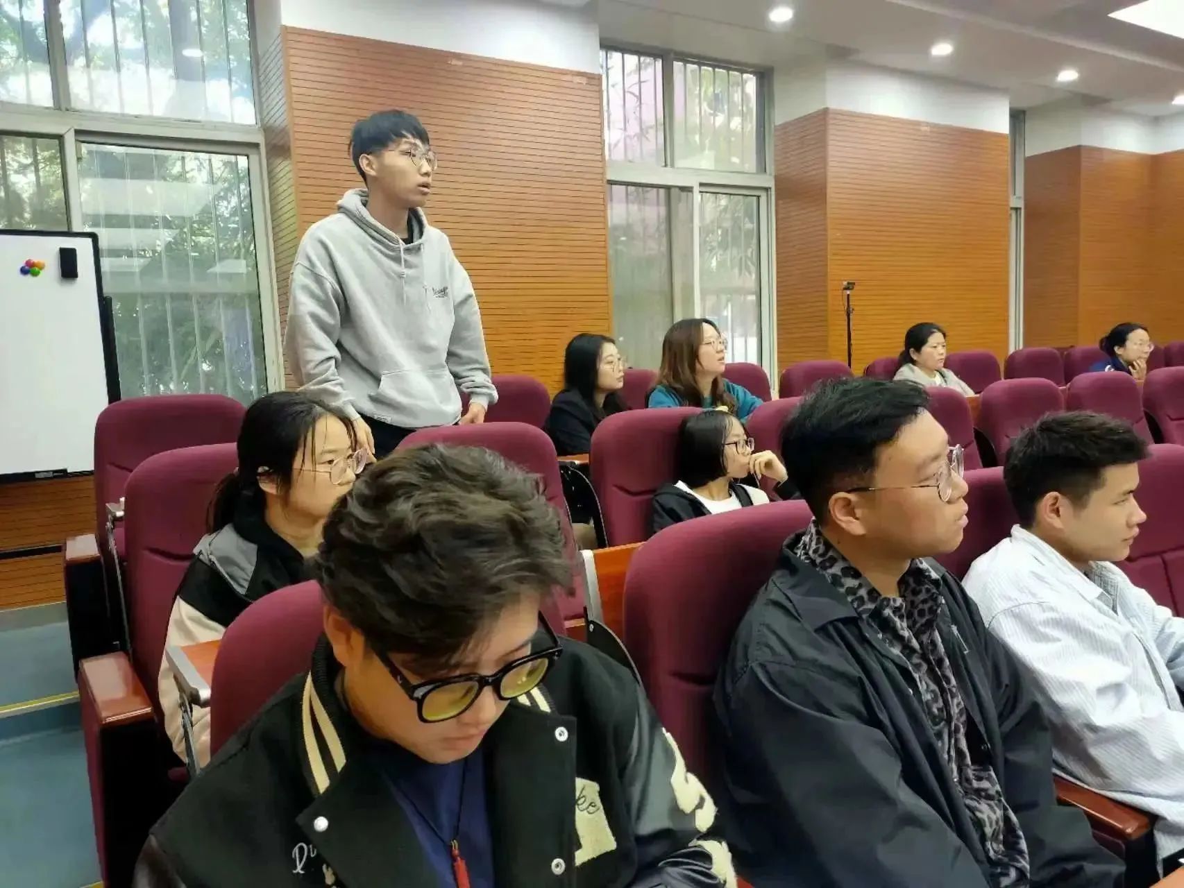 参会同学针对两位主讲嘉宾的报告内容,结合个人求职实际,积极探讨,踊跃提问,两位嘉宾老师逐一答疑解惑,并欢迎同学们随时交流。