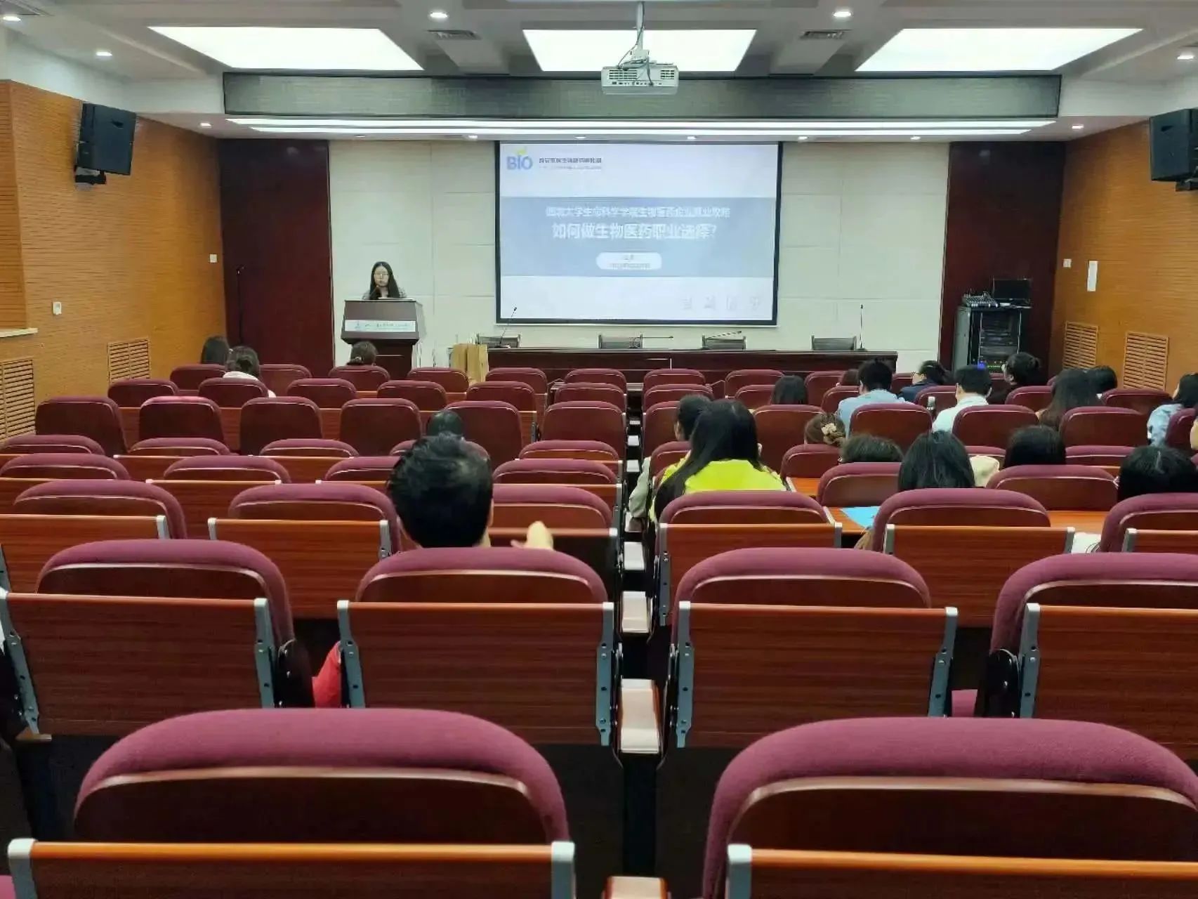 赵英总监从自身经历与实际案例入手,首先向同学们抛出命题:如何进行职业选择与生涯规划。随后从什么是生物医药、生物医药产业形态分析、生物医药企业组织架构三个方面,重点围绕药品、医疗器械、体外诊断、化妆品等毕业生普遍关注的领域,综合分析了研发、生产、市场、销售、职能五类岗位,深入浅出地讲解了生物医药行业的求职“干货”。她提到,如今就业市场竞争日益激烈,作为即将进入工作岗位的高校毕业生,应当主动了解行业情况与发展趋势,及时转变员工思维,积极投身就业浪潮,及早树立职业态度与职业精神。最后,她向毕业生分享了高新区生物医药产业的基本情况、用人需求与总体待遇,祝愿大家早日收获心仪的offer。