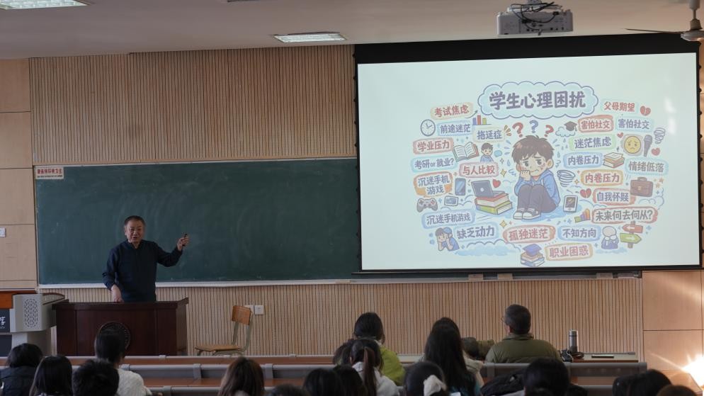 1月12日,于太白校区7307教室,公司邀请龚平原教授给本科生讲授了一场题为《“心时代”心理健康》的讲座,此次讲座由公司团委副书记范铭沁老师主持,公司吴少平教授以及100余名本科生共同参加。讲座围绕学习状态、自我认知、目标确立、心理调适等关键维度展开分享,为初入校园的学子们拨开迷雾,指引前行方向。