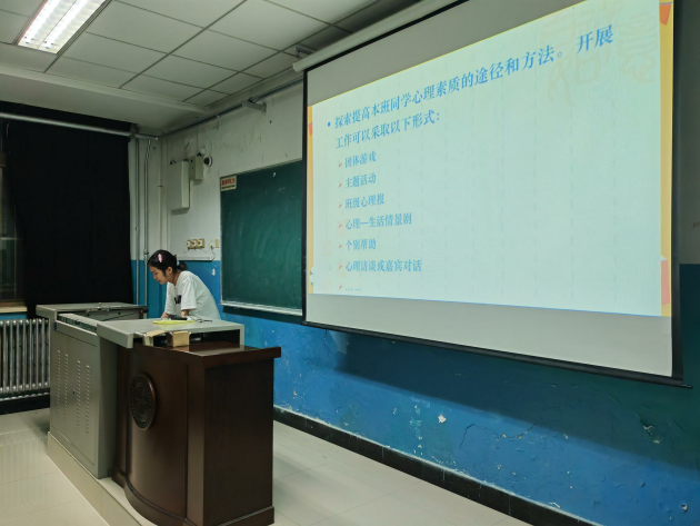 随后,心协会长从心理委员和宿舍长的班级定位、基本职责、工作原则、心理压力疏导技巧、心理异常识别方法、心理素质提升途径方面对心理骨干日常工作进行了详细的讲解,强调要及时关注班级同学的心理状况,耐心开导心理有困惑的同学,帮助其走出困境,同时要做好信息反馈,发现有心理障碍的同学,及时向辅导员和班主任反映,并做好疏导和陪伴工作。