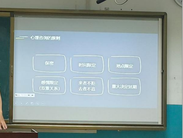 最后,张老师介绍了心理咨询的伦理和原则,着重强调了心理咨询具有很高的安全性和保密性,认为心理咨询不是心理负担,而是帮助同学们呵护心理健康,成为更好自己的有效途径。