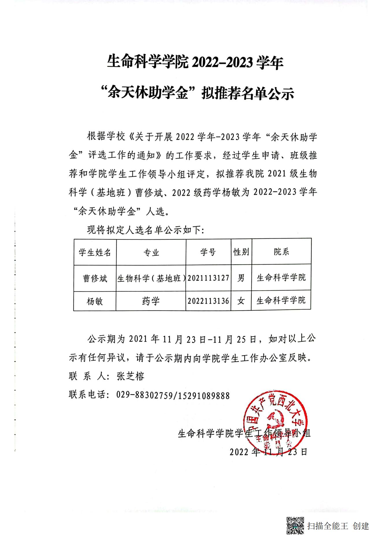 2026世界杯官网2022-2023学年“余天休助学金”拟推荐名单公示