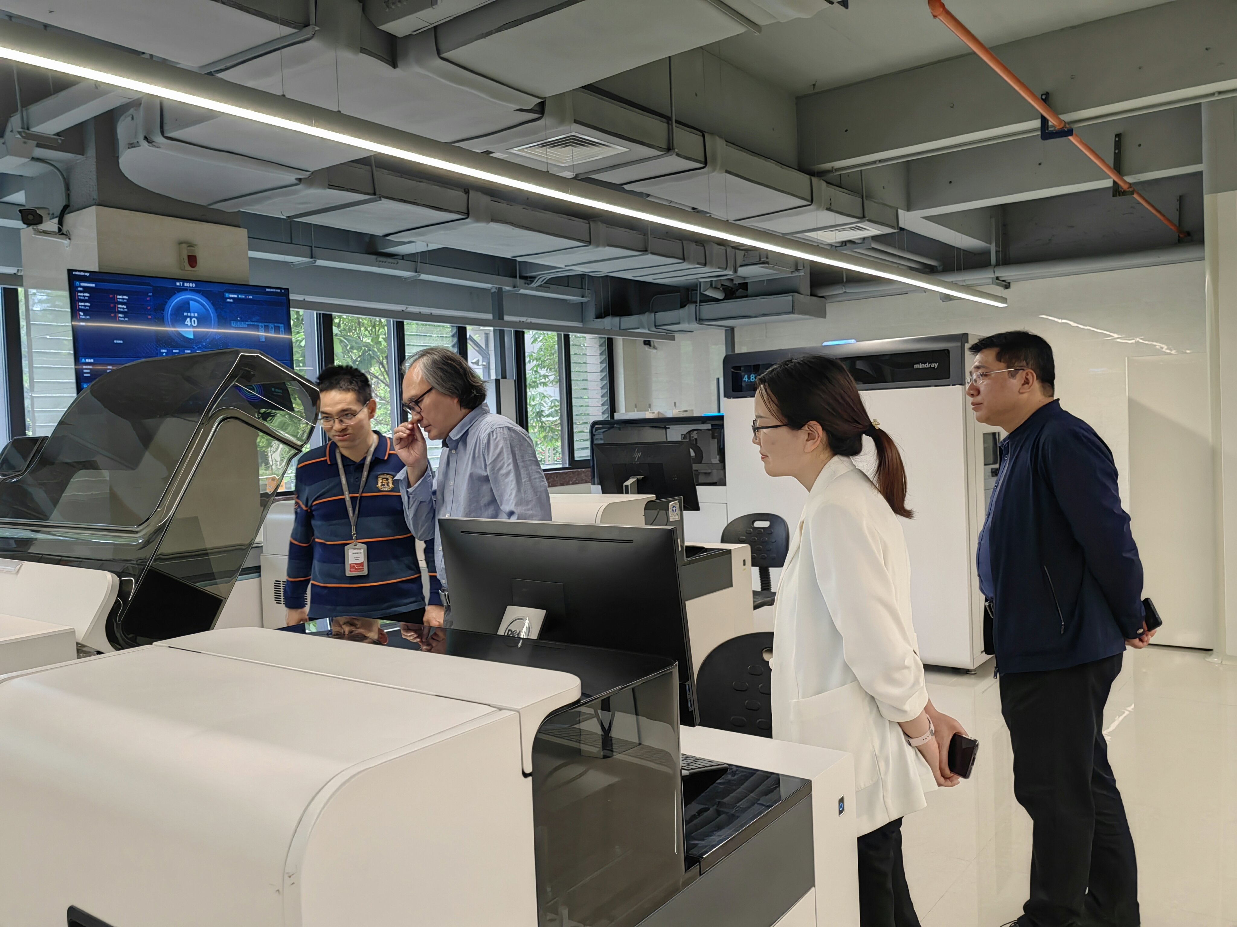 下午,经理付爱根、党委副书记魏宁、副教授王会娟、就业专干张芝榕赴迈瑞医疗西安研究院走访调研,迈瑞医疗西研院总经理明利强、人力资源中心周筱艳、研发运营管理部陈碧君及员工代表参加座谈。公司一行人在迈瑞医疗西研院总经理明利强的带领下参观了迈瑞流水线实验室、监护仪实验室、超声仪实验室等。座谈会上,明利强介绍了公司的发展历程、核心业务、产业布局以及员工任职情况,表达了对公司建设及毕业生质量的认可。付爱根经理、魏宁副书记介绍了公司的发展历程、团队建设、人才培养、毕业生就业等情况。王会娟副教授分享了公司专业硕士的培养方式。双方围绕企业人才需求、人才培养质量提升、实习实践平台建设等方面进行了深入探讨。