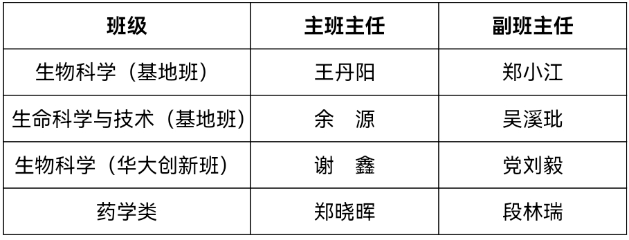 2025级本科生班主任名单: