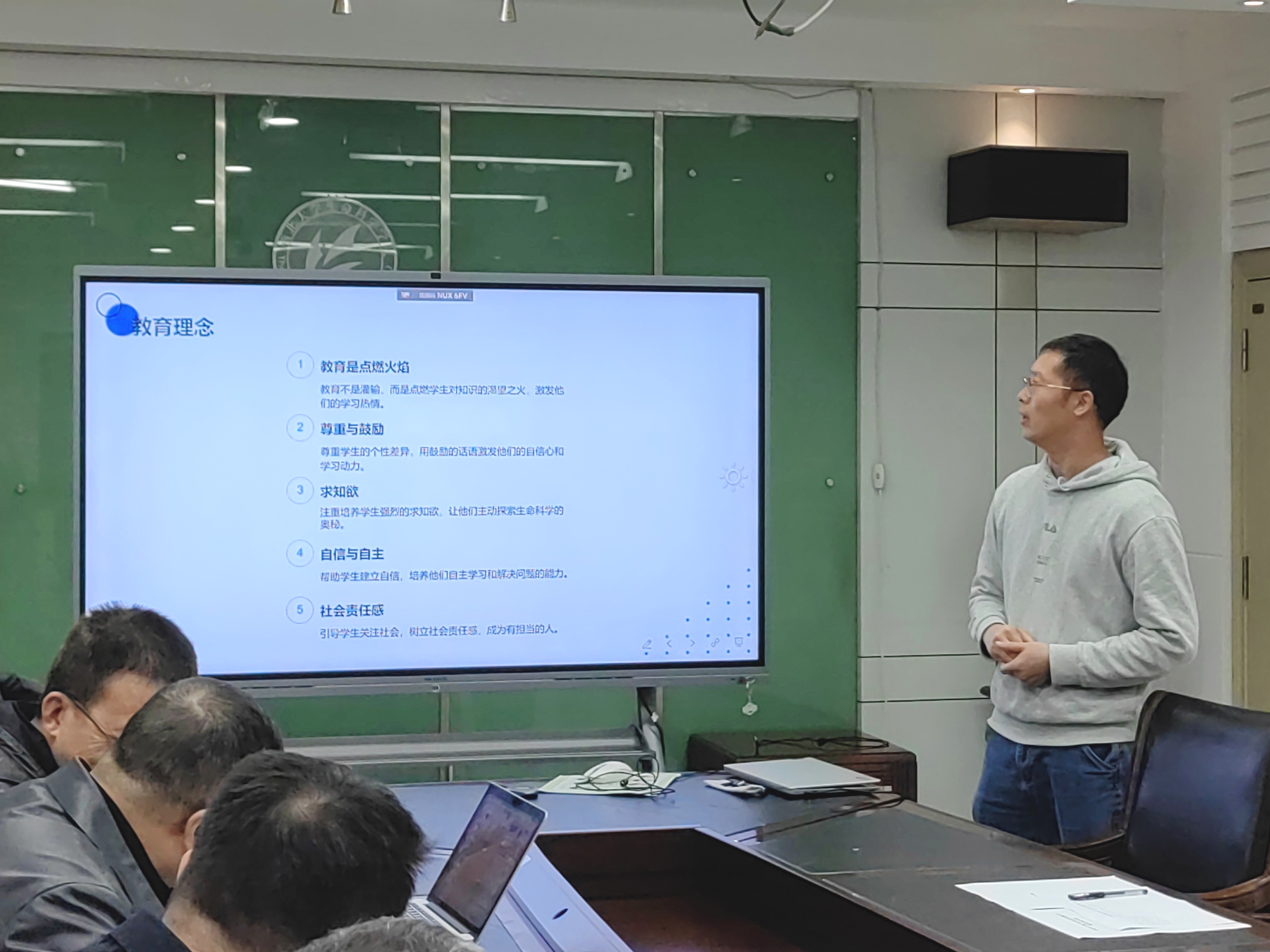 陈露副书记首先对各位报名老师对公司员工工作和班主任工作的支持表示肯定与感谢,对选聘答辩的流程与评分标准进行具体说明。随后,5名2025级本科生副班主任申报人依次进行选聘答辩。各位老师结合教学科研实际与自身员工工作经历,分别从对班主任工作的认识、副班主任角色定位、对本科生成长规律的理解、自身竞选优势及未来工作设想等几个方面进行介绍,与会评委结合竞聘老师自述,围绕思想教育引领、员工档案建立、专业兴趣引导、学习能动性激活、困难帮扶等问题进行探讨交流,竞聘老师积极回应。最后,与会评委根据竞聘老师自述与答辩情况进行现场评分,初步确定2025级本科生副班主任拟选聘名单,一致通过了主、副班主任搭档情况。