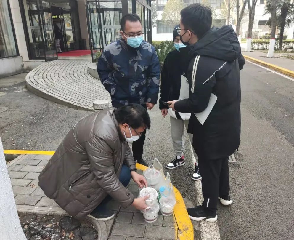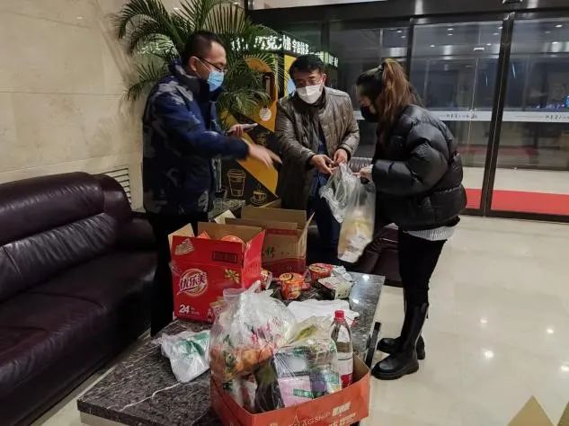 隔离的员工收到志愿者们送来热气腾腾的饭菜和贴心慰问