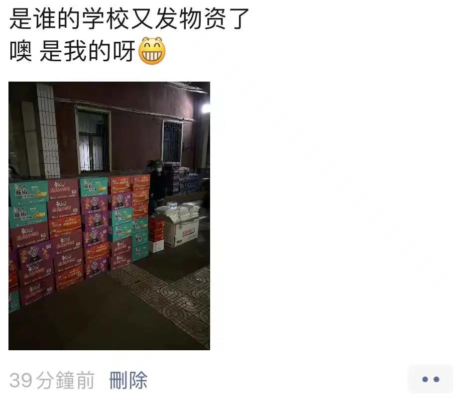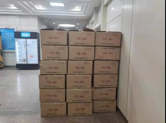 物资搬运完毕后,老师们立即组织同学们戴好口罩,分楼层排队,保持一米五间距,有序领取爱心物资,让爱心发放不仅温馨,而且放心。