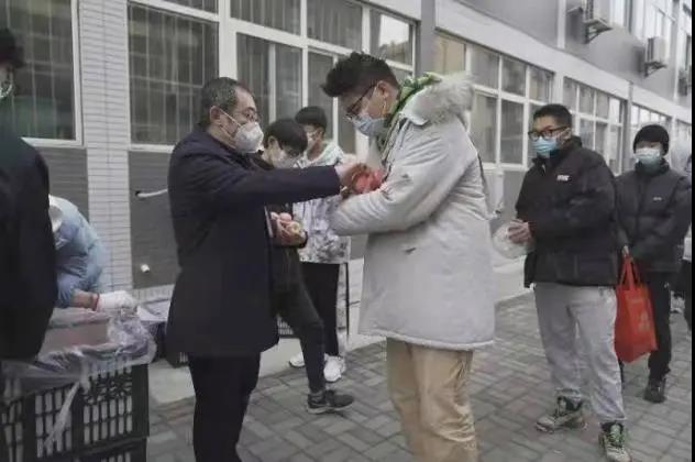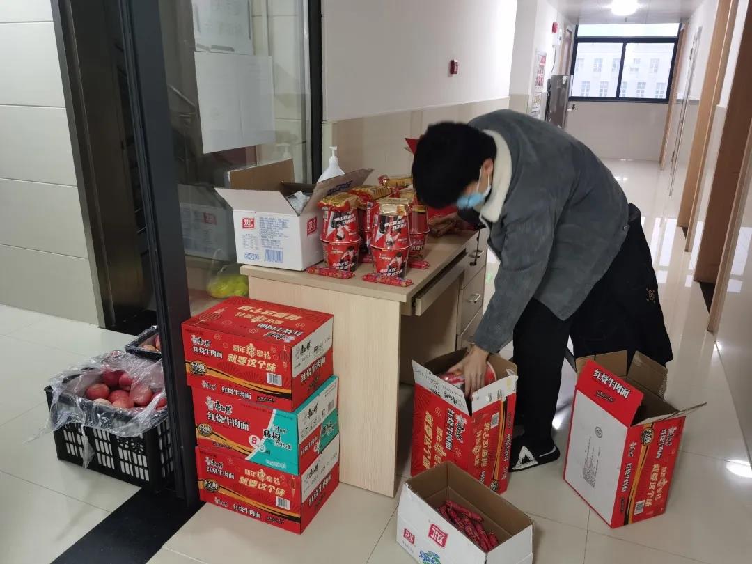 学部同样没有忘记远在附属医院实习的27名同学,带领物资前去看望,让大家实现人手一份苹果香肠方便面,口罩馃馅煮鸡蛋的梦想。