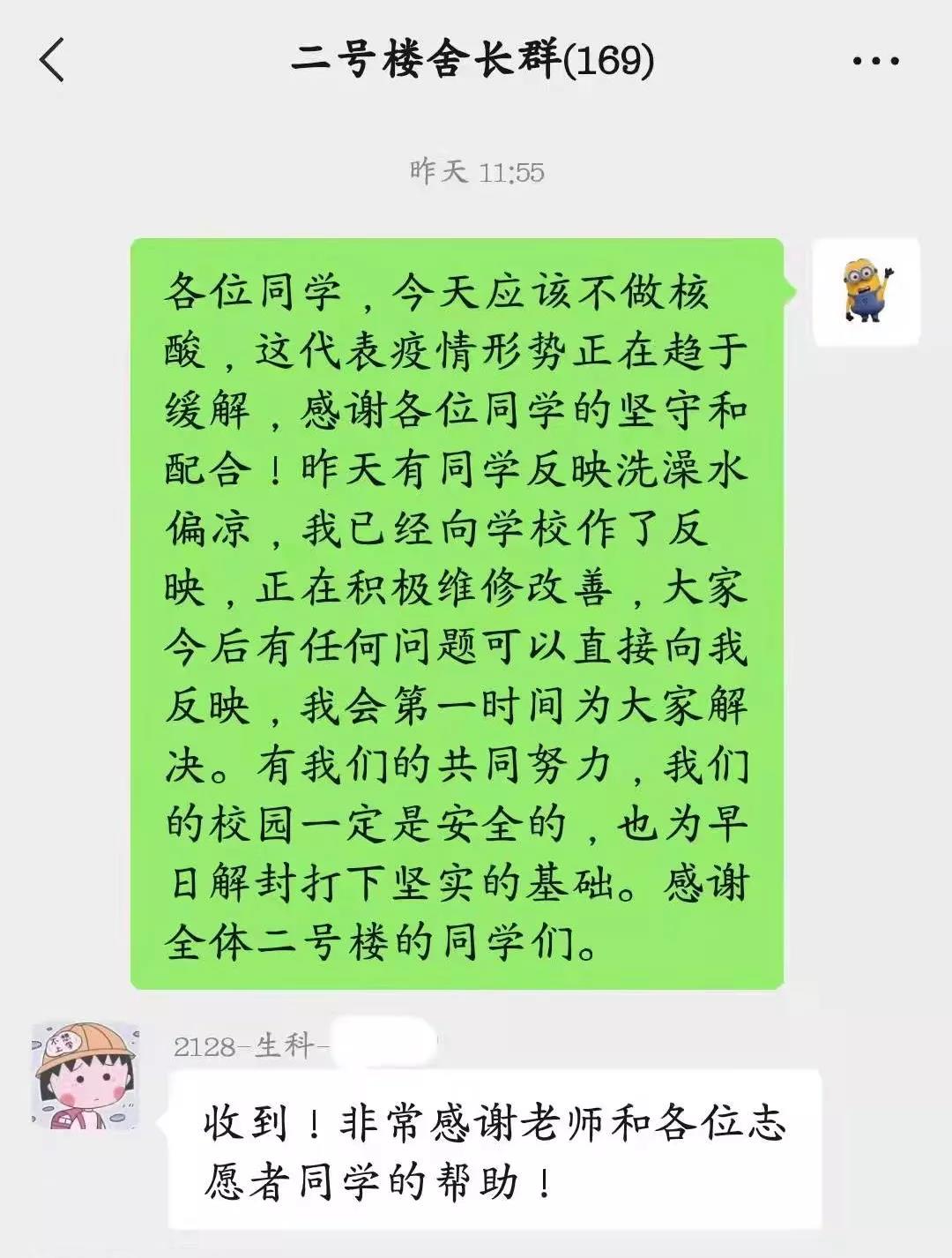 学部领导班子始终坚守一线,发挥头雁效应,及时应对突发状况,做好统筹协调;学部第一时间组建师生“党旗飘飘”党员突击队,主动参与战“疫”志愿服务,积极参与核酸检测组织、错峰就餐协调、物资发放等工作,争先锋、勇担当;压紧压实教师主体责任,各专业班主任第一时间召开线上主题班会,稳定员工思想,传递战“疫”信心;任课教师精化优化网络课程、设计个性化辅导;导师积极响应“隔离不停学”,线上组会实时科研指导,夯实实验室安全责任;学工干部坚守抗疫一线,在做好员工管理服务的同时,组织线上趣味运动活、线上抗疫精神分享会等活动,凝聚战“疫”精神、传递正能量。