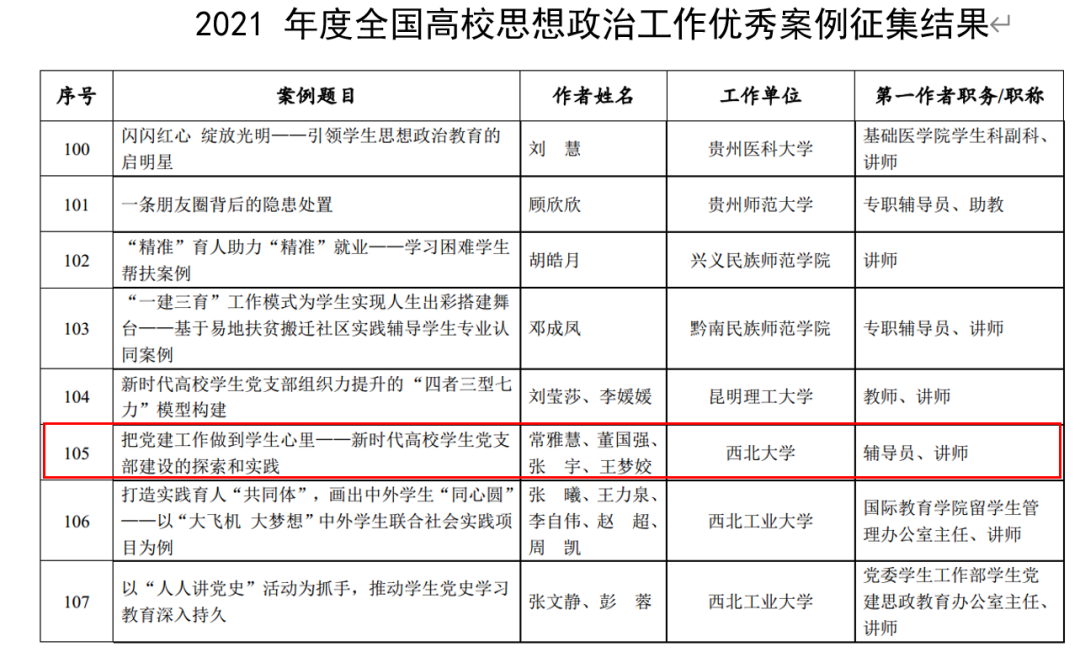 近日,在2021年度全国高校思想政治工作优秀案例征集活动中,公司《把党建工作做到员工心里——新时代高校员工党支部建设的探索和实践》思政工作案例获全国三等奖。