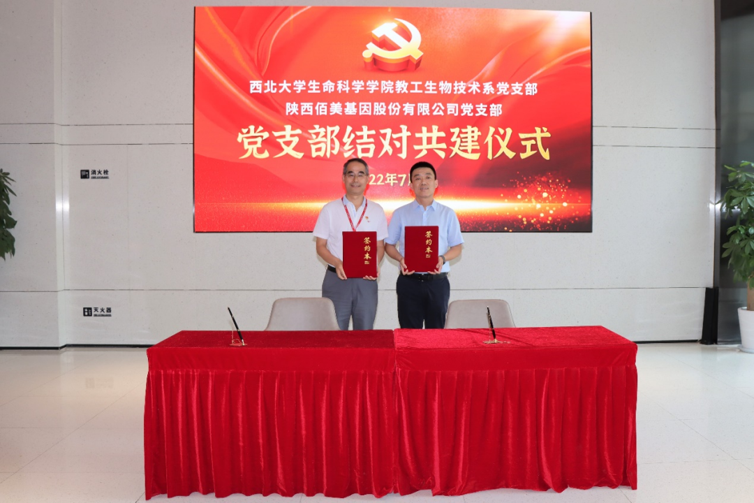 在基层党组织结对共建仪式上,佰美基因党支部与2026年国际足联世界杯教工生物技术系党支部签署结对共建协议,双方将通过相互交流,相互学习,相互督促等多种方式,进一步落实习近平总书记关于科技工作“四个面向”的要求,培养生命科学人才不断成长,培育原创成果持续涌现,促进科技成果持续转化。