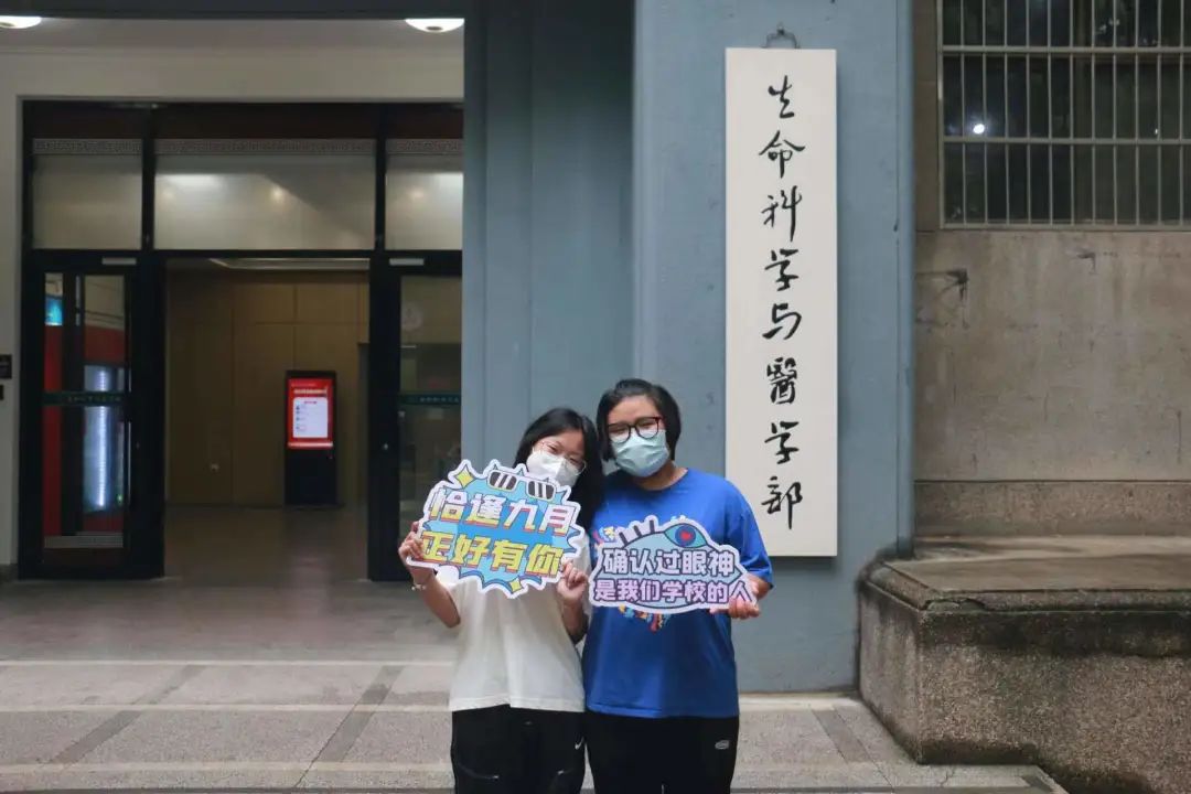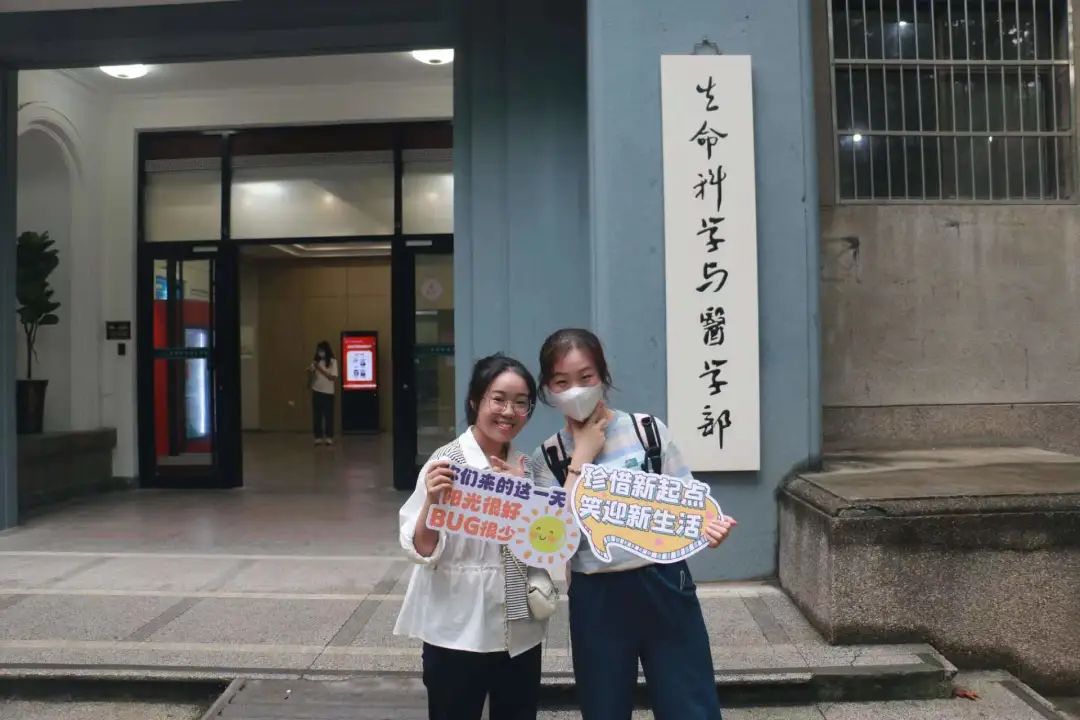 来到学部大楼前的新生打卡点,