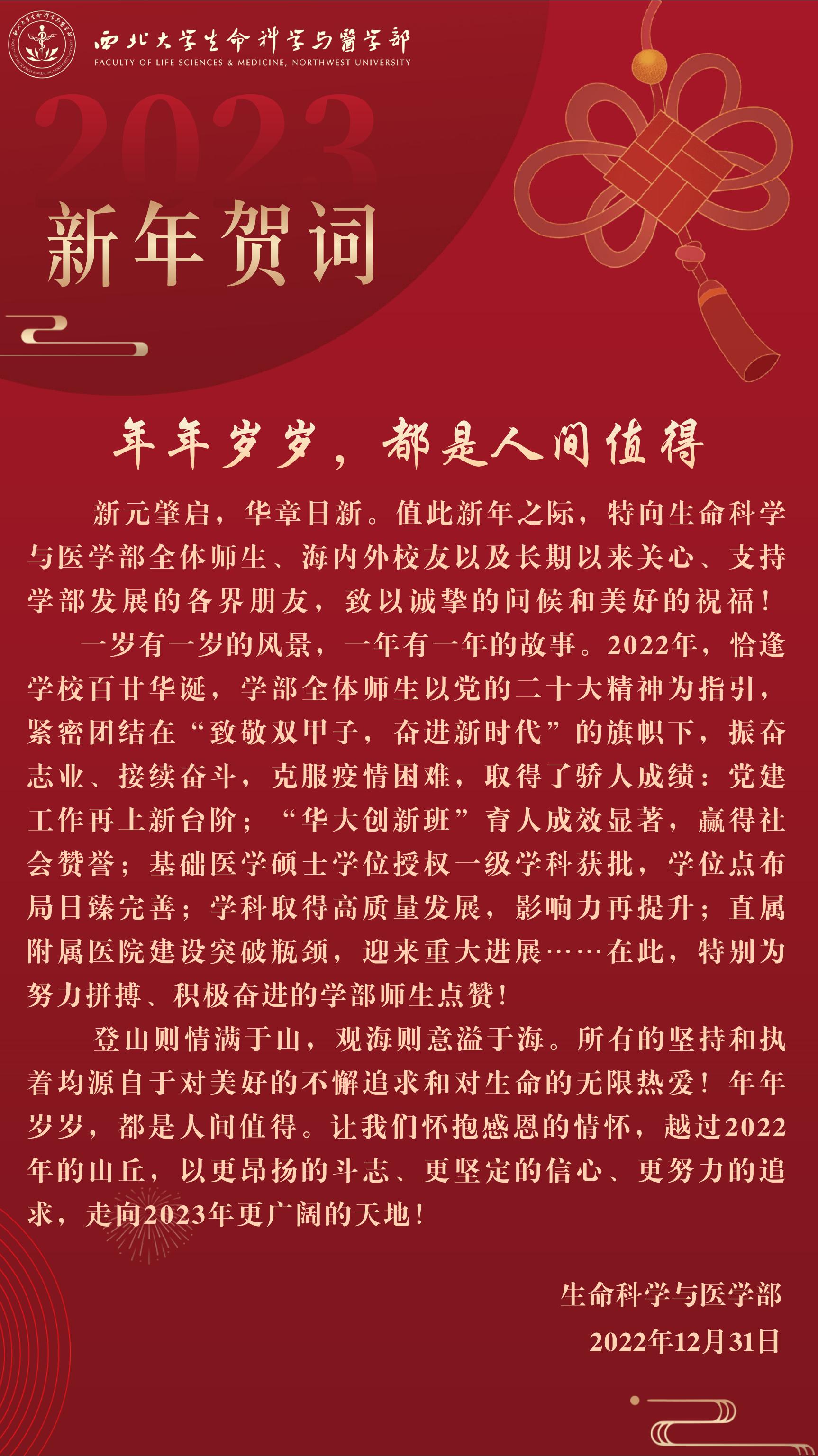 年年岁岁,都是人间值得——NWU生命科学与医学部新年贺词