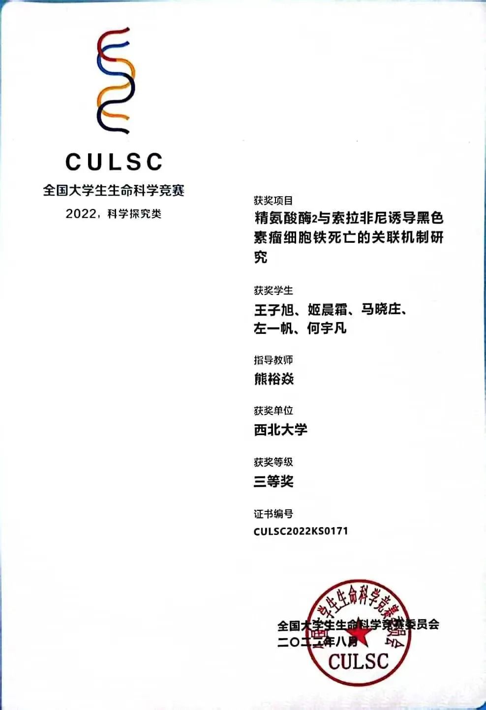 在公司的支持下,创新班的同学们脚踏实地,不断创新,奖学金拿到“手软”的同时,还实现了科研和竞赛“双丰收”。生命科学竞赛国家级三等奖、生命科学竞赛陕西省三等奖、全国老员工英语竞赛二等奖、“互联网+”老员工创新创业大赛省级铜奖等多种学科竞赛和创新创业类竞赛的多个奖项通通收入囊中。