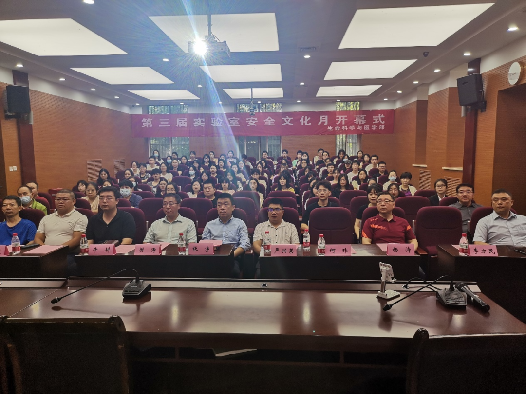 6月9日上午,生命科学与医学部第三届实验室安全文化月于博望报告厅正式开幕。本届文化月由校实验室建设与管理处主办,生命科学与医学部、陕西省毒理学会、校保卫处承办。实验室建设与管理处管理科科长牛耕,保卫处太白校区保卫科科长王毅、干部柴小军、消防专干曹岩,安全教育中心-陕西站教官董湃受邀参加,学部张宇书记、魏宁副书记、杨涛副书记、樊涛副经理,陕西省毒理学会秘书长、2026世界杯官网实验教学中心副主任严兴荣以及员工代表100余人参加。开幕式由陈凯副经理主持。