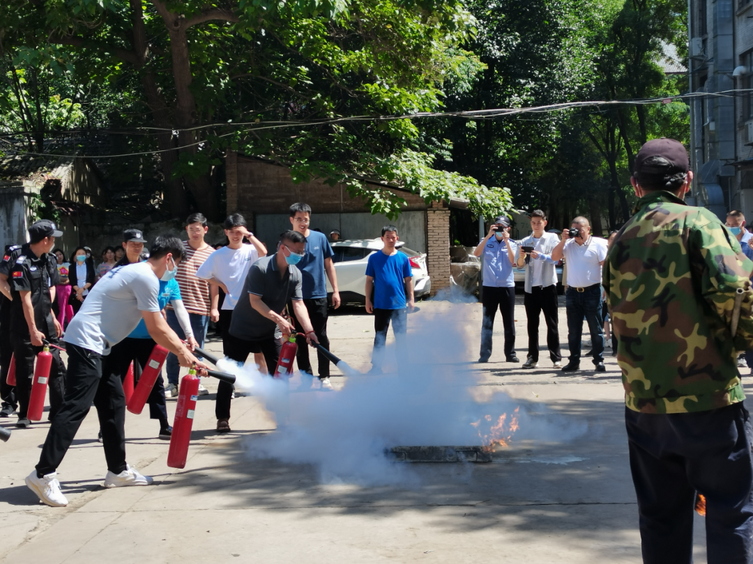 应急疏散演练后,老师带领同学们来到9号楼侧空地进行火灾应急处理方法的学习与演练。培训老师首先对实验室常用灭火器的使用方法以及注意事项进行介绍,叮嘱大家实验室遇到火灾一定要冷静处理,正确合理地使用灭火器,根据具体发生情况结合不同灭火器的优缺点选择合适的灭火器进行灭火。在培训老师的示范和指导之下,师生们有序进行了消防演练,包括使用灭火毯消除小范围的火势、煤气罐着火的灭火处理以及液体燃料着火的应急处理。经过此次学习与演练,提高了师生对于火灾的警觉性,同时将理论和实践相结合,帮助师生们更好地掌握了应对实验室紧急火灾时的基本灭火方法。