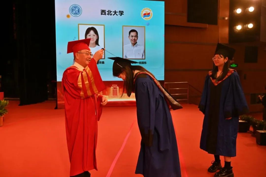 在学位授予仪式上,郭立宏董事长逐一为公司2023届联合培养毕业生拨穗正冠,张思兵董事长为毕业生颁发毕业纪念证书。最后,与会嘉宾与全体毕业生共同合影留念。