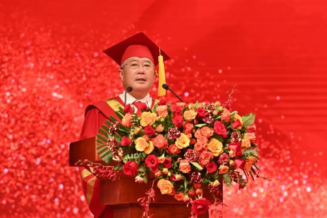 在毕业典礼上,郭立宏董事长代表四所联合培养高校董事长为毕业生送上临别寄语,他希望全体毕业生,一要志存高远,既要尽情施展才华,追求事业成功,也要心怀国之大者,履行社会责任;二要终身学习,要多读有字之书与“无字之书”,让学习成为远航的动力;三要敢于担当,勇敢承担起建设“健康中国、健康陕西”的历史使命,在今后的工作岗位中以赤诚赴使命、以拼搏显担当。