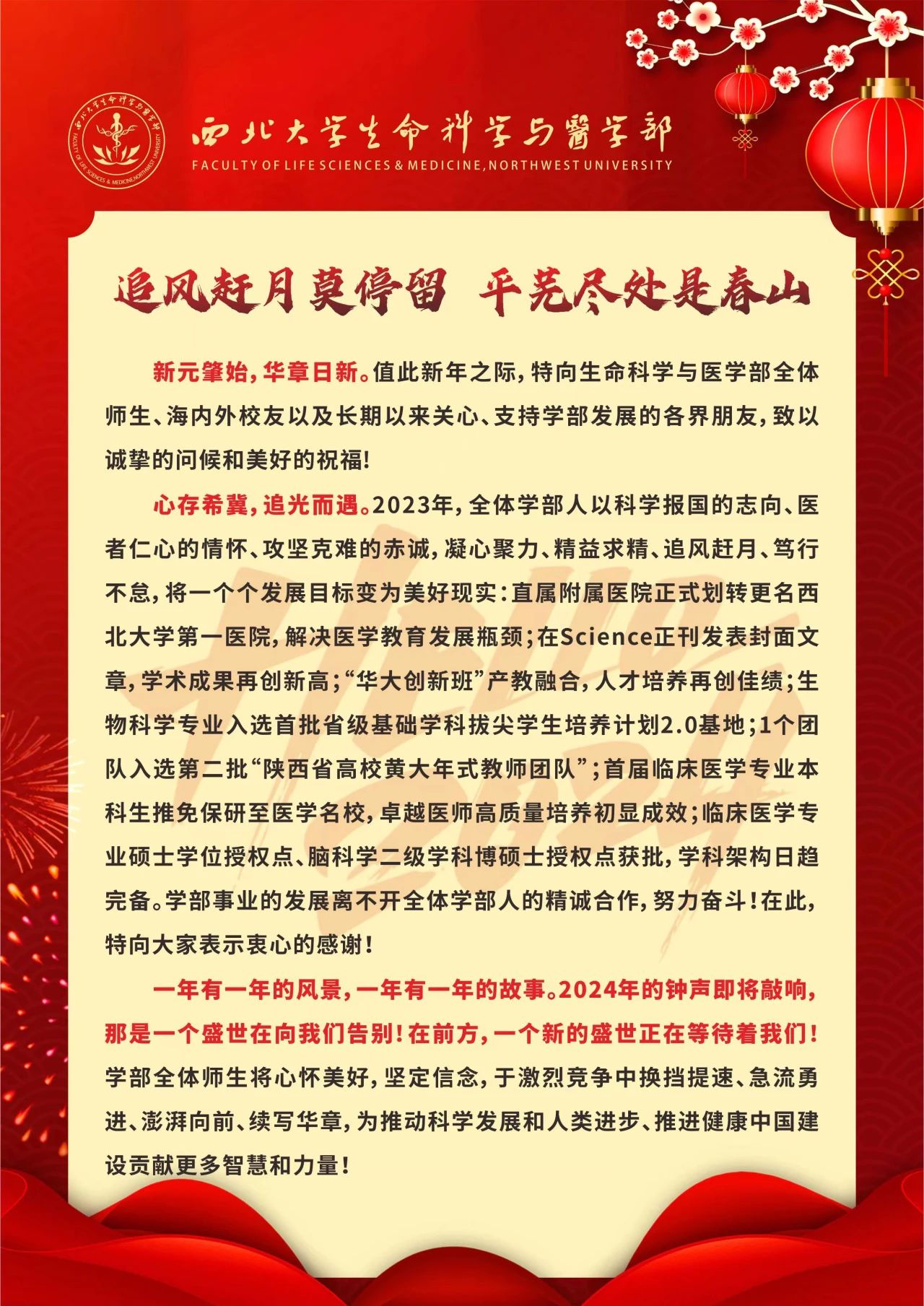 追风赶月莫停留,平芜尽处是春山—NWU生命科学与医学部新年贺词