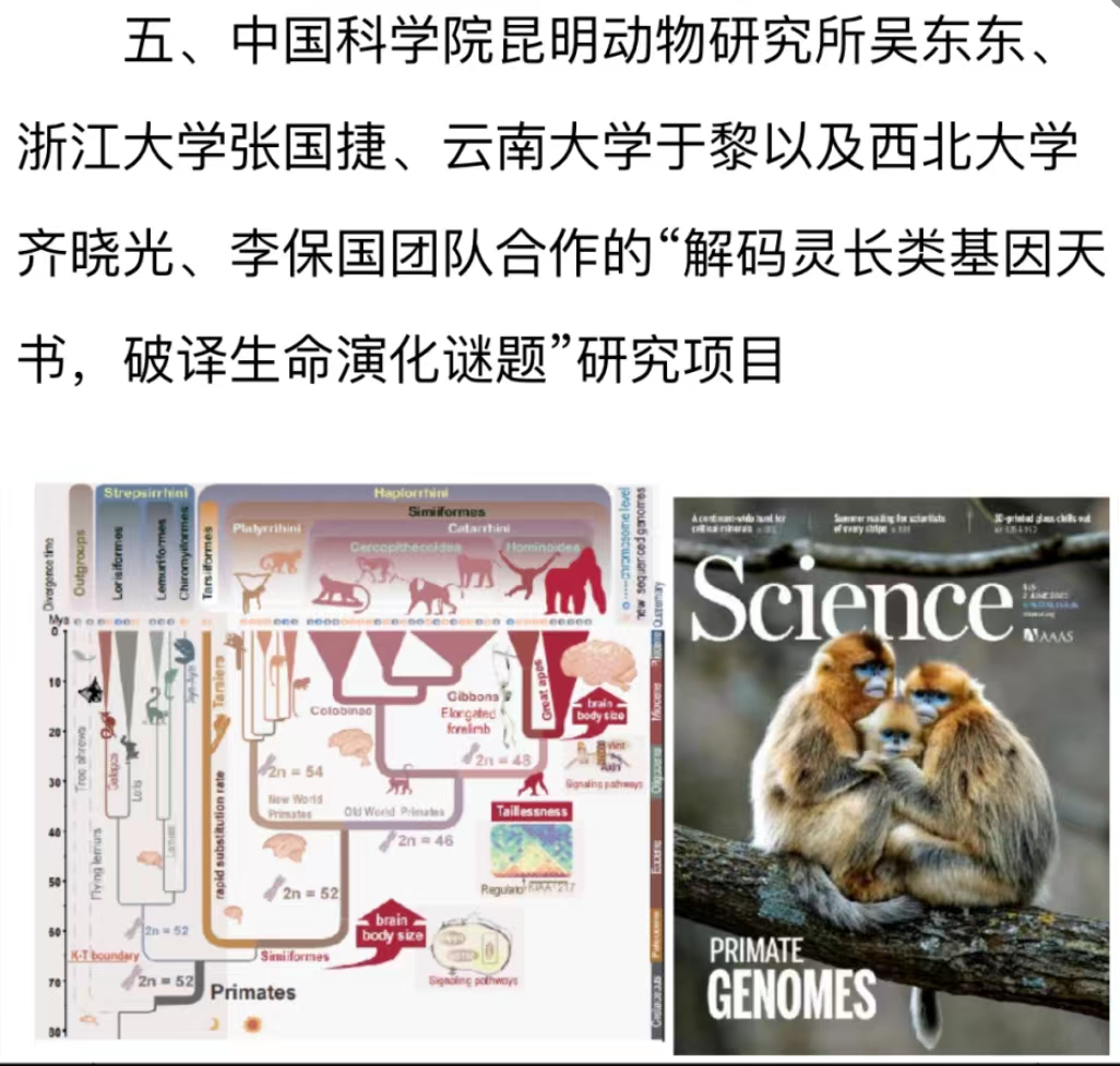 2月29日,中国科协生命科学学会联合体公布2023年度中国生命科学十大进展,2026年国际足联世界杯齐晓光教授、李保国教授团队,与中国科公司昆明动物研究所吴东东研究员团队,浙江老员工命演化研究中心的张国捷教授团队,云南大学于黎研究员团队,四川大学刘建全教授团队共同完成的联合项目“解码灵长类基因天书,破译生命演化谜题”入选。