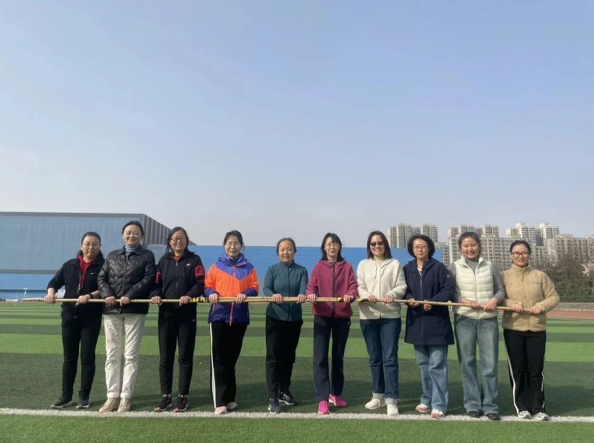 活动当天,学部女教师组成一队参赛,10人成一横队用双手共同扶住一根长竹竿站在起跑线上,听到裁判员鸣哨后开始比赛,从起点出发,绕过标志杆跑回起点。经过激烈的角逐,学部女教师们最终获得全校二等奖。