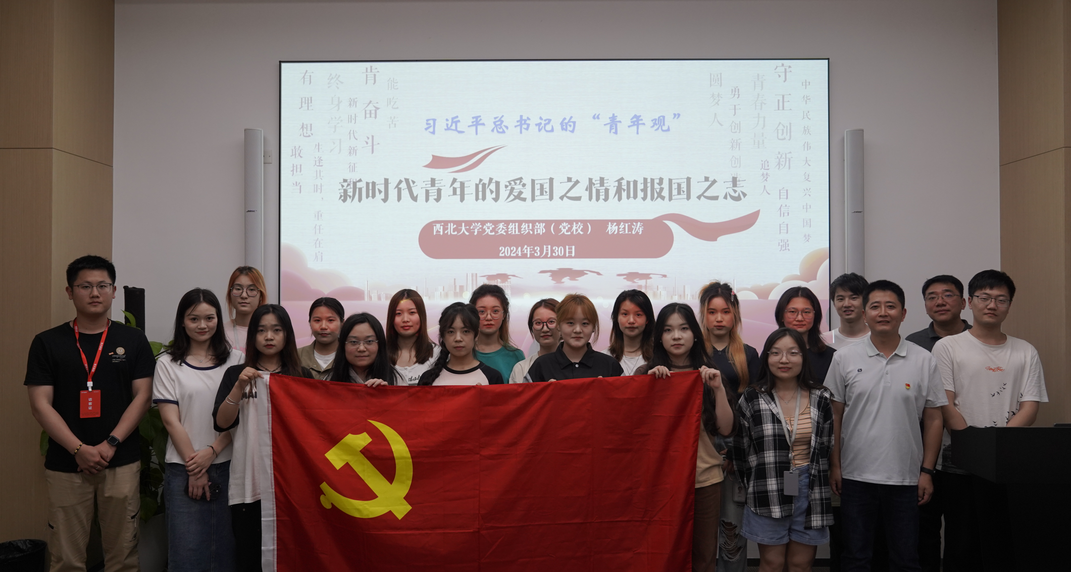 随后,公司党委组织部副部长、党校副董事长杨红涛给华大创新班临时党小组带来了一节题为“从习近平总书记的‘青年观’谈新时代青年的爱国之情和报国之志”的主题党课。杨红涛老师通过列举历史典故与理论讲述相结合,以贴近青年的方式讲述了一节具有感染力的党课。他告诉同学们要用自己所学的知识为国家和社会的发展贡献自己青年的力量。正如习近平总书记说的“青年犹如大地上茁壮成长的小树,总有一天会长成参天大树,撑起一片天。青年又如初升的朝阳,不断积聚着能量,总有一刻会把光和热洒满大地。党和国家的希望寄托在青年身上!”