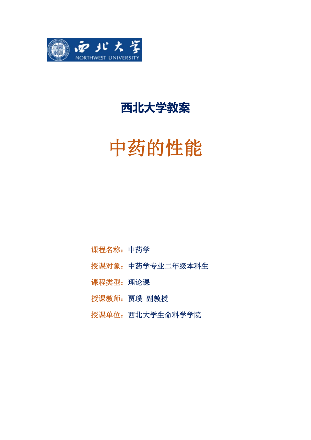 《中药学》 贾璞(中药学课程组)