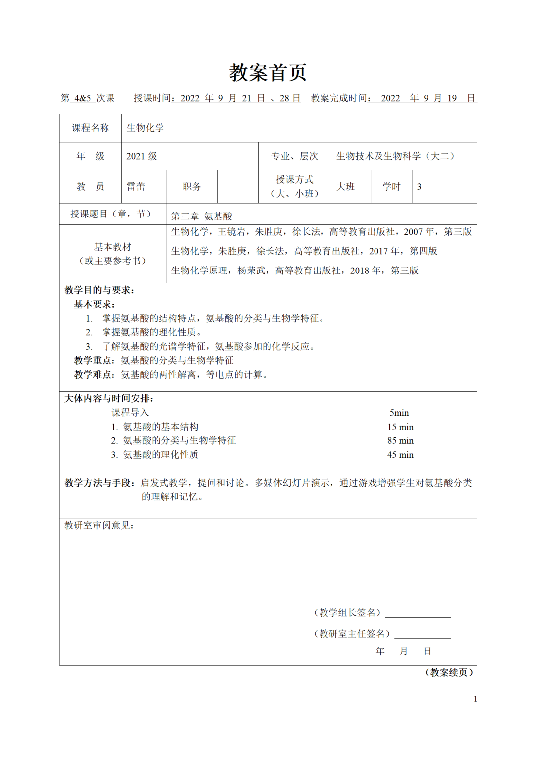 【《生物化学(上)教案展示】