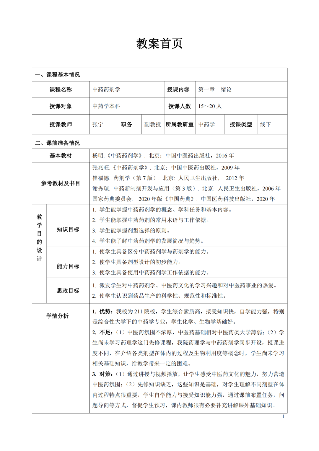 《中药药剂学》 张宁(中药药剂学课程组)