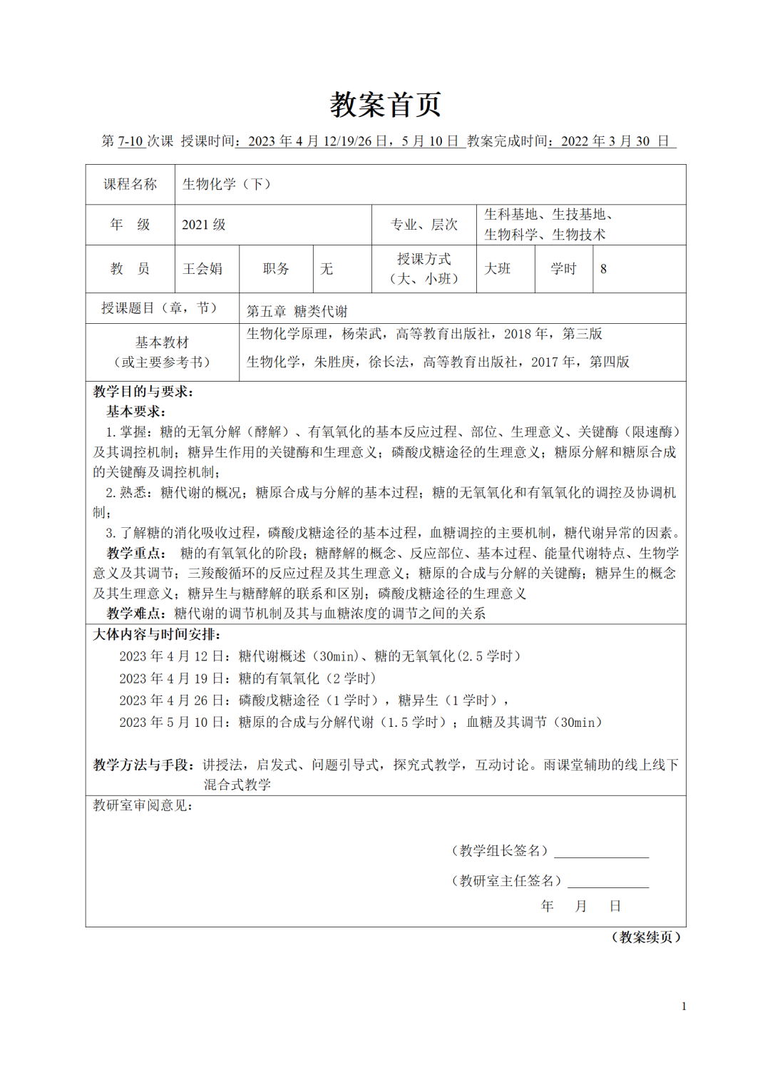 《生物化学(下)》 王会娟(生物化学课程组)