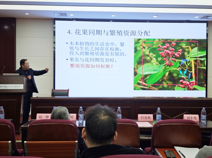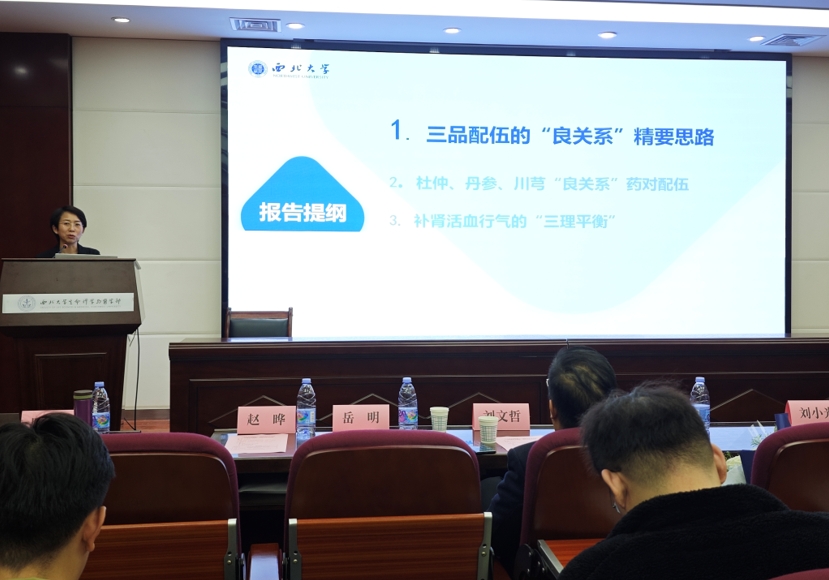 专家报告阶段由公司经理助理王世伟教授主持,公司刘文哲教授、岳明教授、赵晔教授和陈耀东副教授分别应邀作专题报告。刘文哲教授以不同植物的繁殖周期为切入点重点解释了合子胚休眠与长繁殖周期的适应性。岳明教授重点介绍了秦岭植物生物多样性的现状、存在问题以及如何更有效地保护秦岭地区的生物多样性。赵晔教授讲解了三品配伍的“良关系”精要思路,杜仲、丹参和川芎“良关系”药物配伍以及补肾活血行气的“三理平衡”。陈耀东副教授讲述了Min系统在杆状细菌分裂定位调控中的作用。