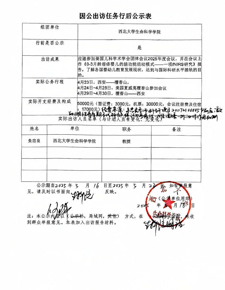 因公出访任务行后公示表