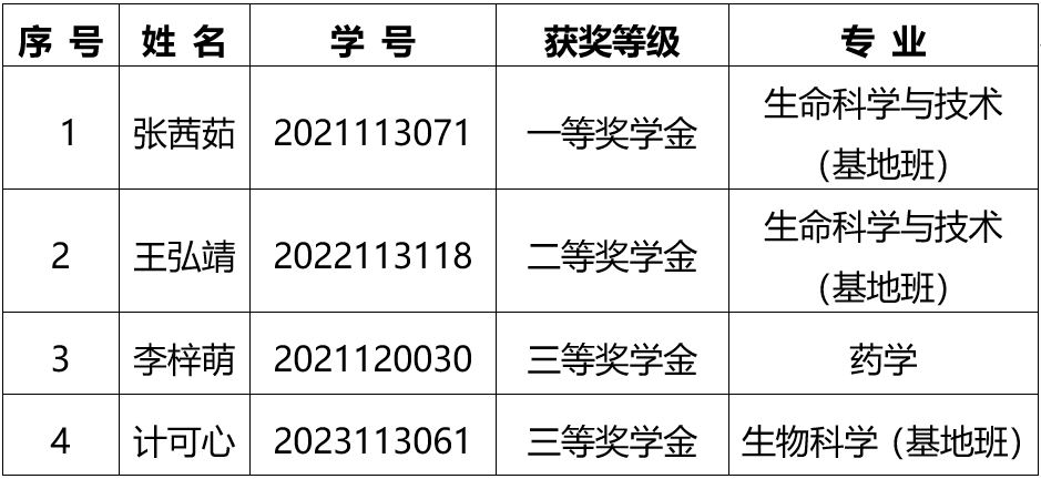 根据《生命科学与医学部关于评选 2023-2024学年“金域医学奖学金”的通知》相关要求和程序,经个人申请、班级推荐、评选领导小组审核,现将拟定人选公示如下。