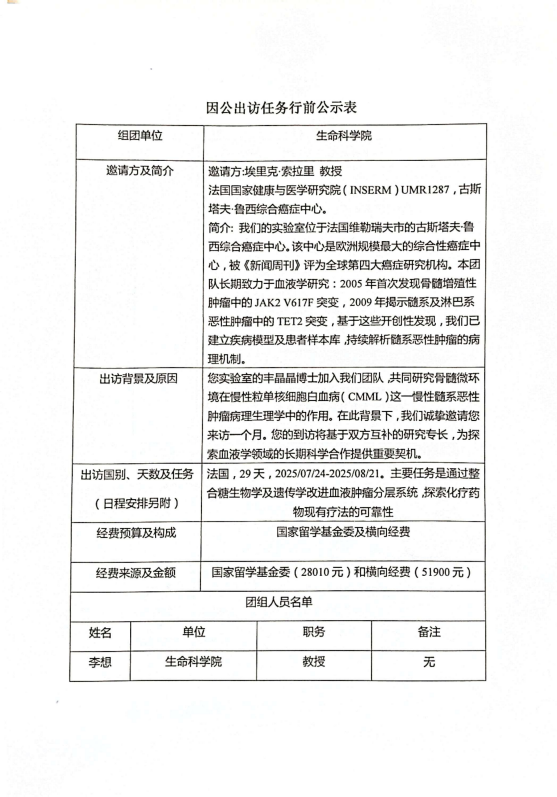 因公出访任务行前公示表