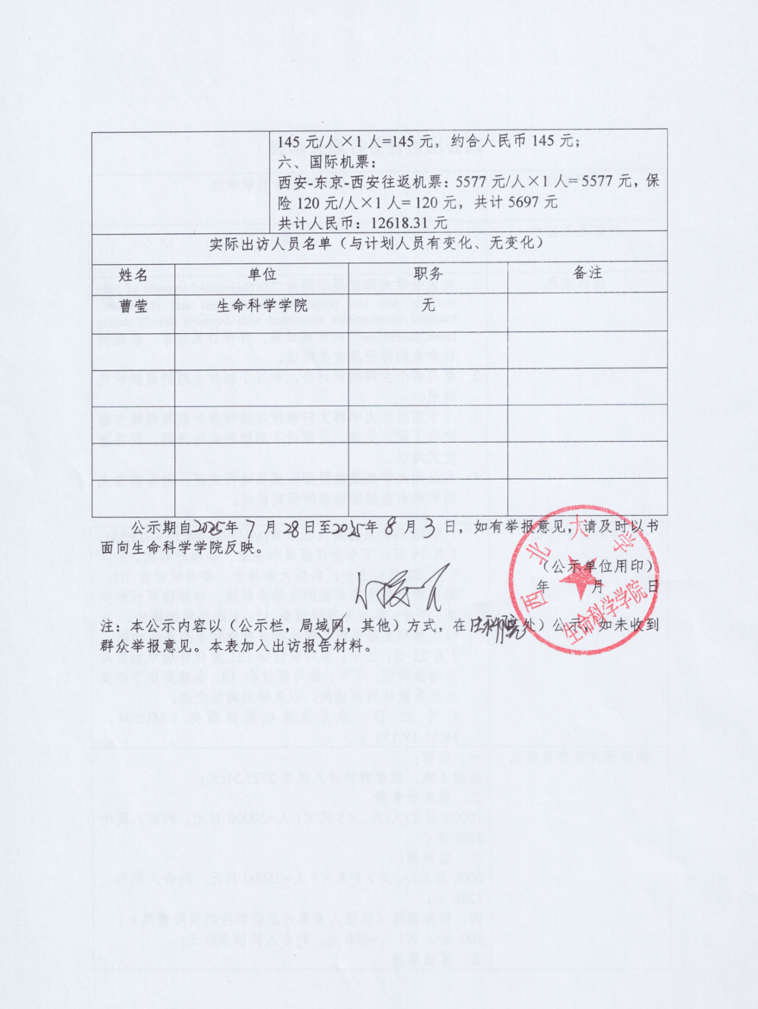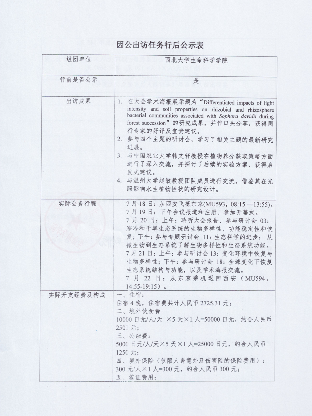 因公出访任务行后公示表