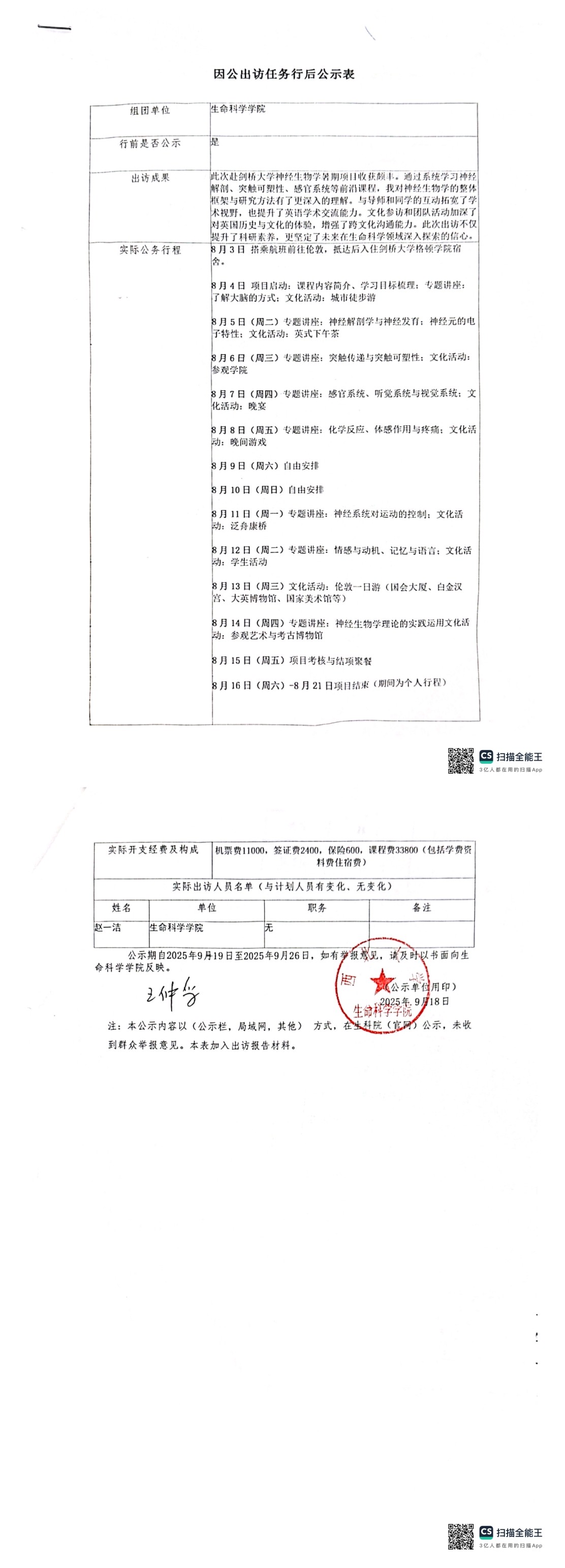 因公出访任务行后公示表