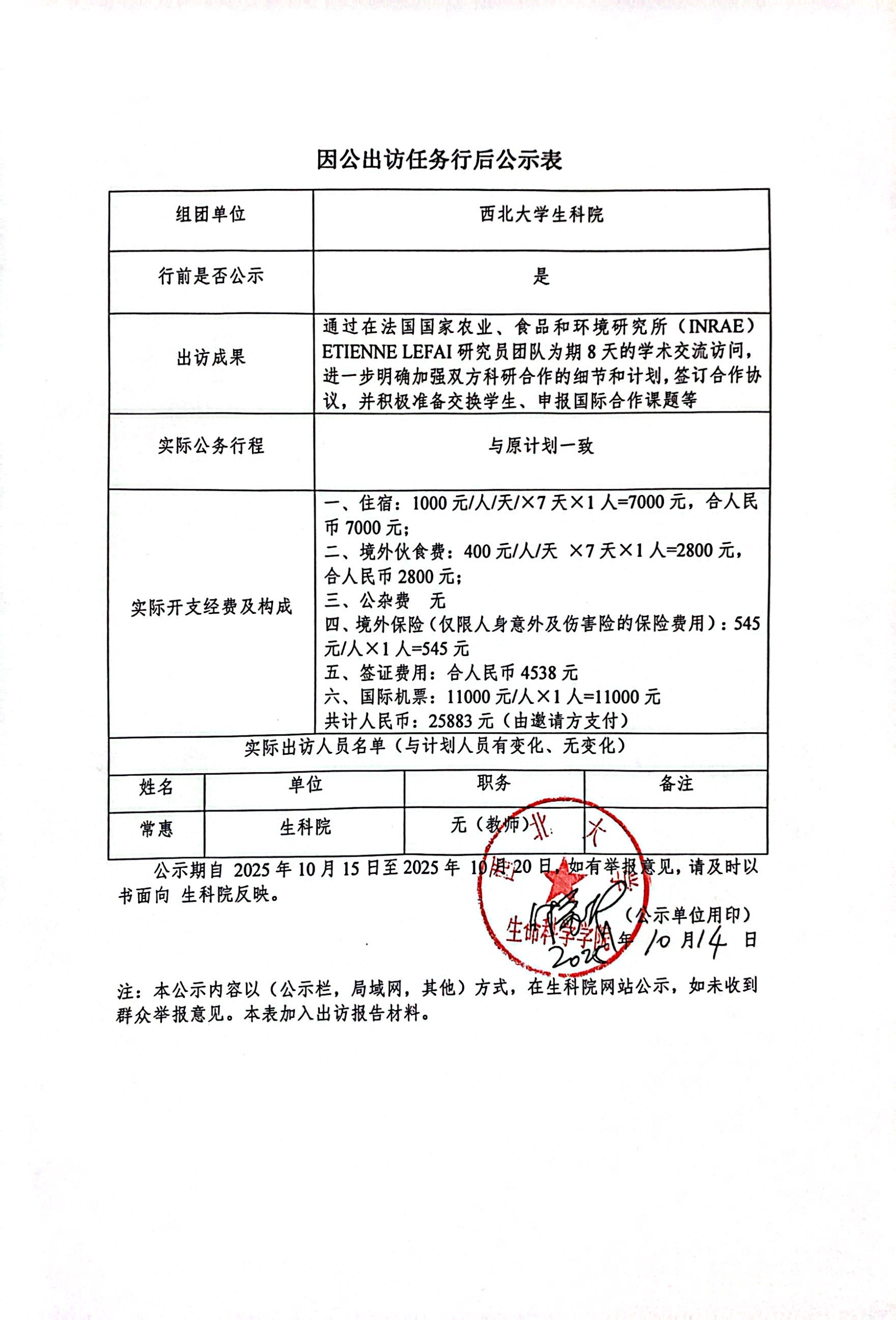 因公出访任务行后公示表