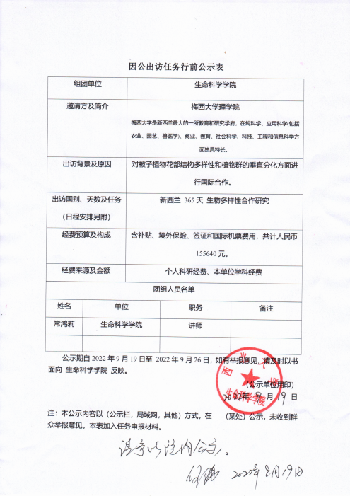 因公出访任务行前公示表