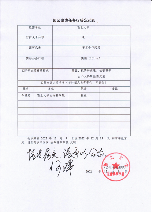因公出访任务行后公示表