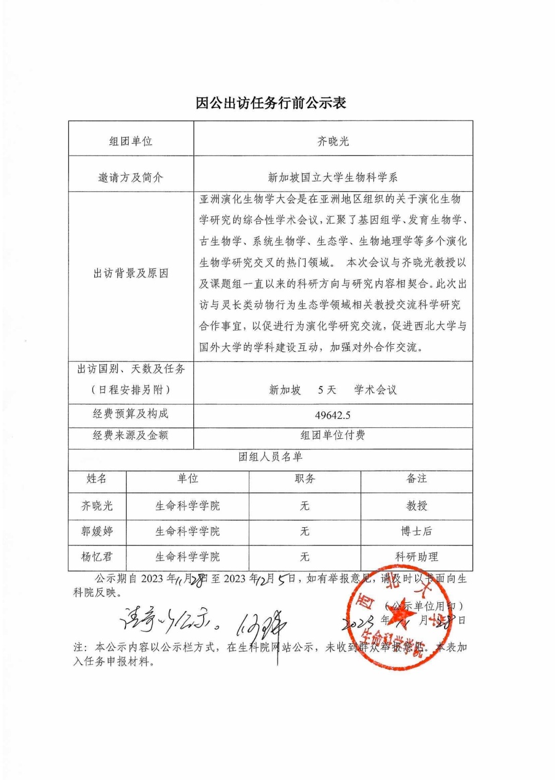 因公出访任务行前公示表