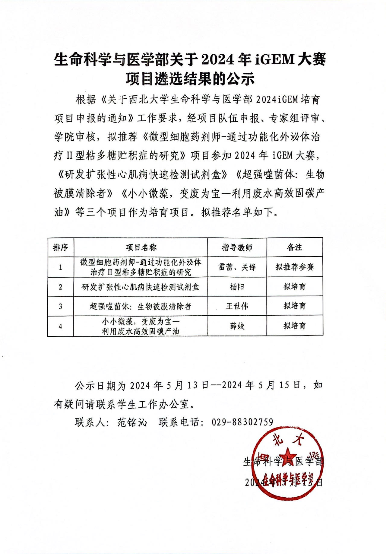 生命科学与医学部关于2024年iGEM大赛项目遴选结果的公示